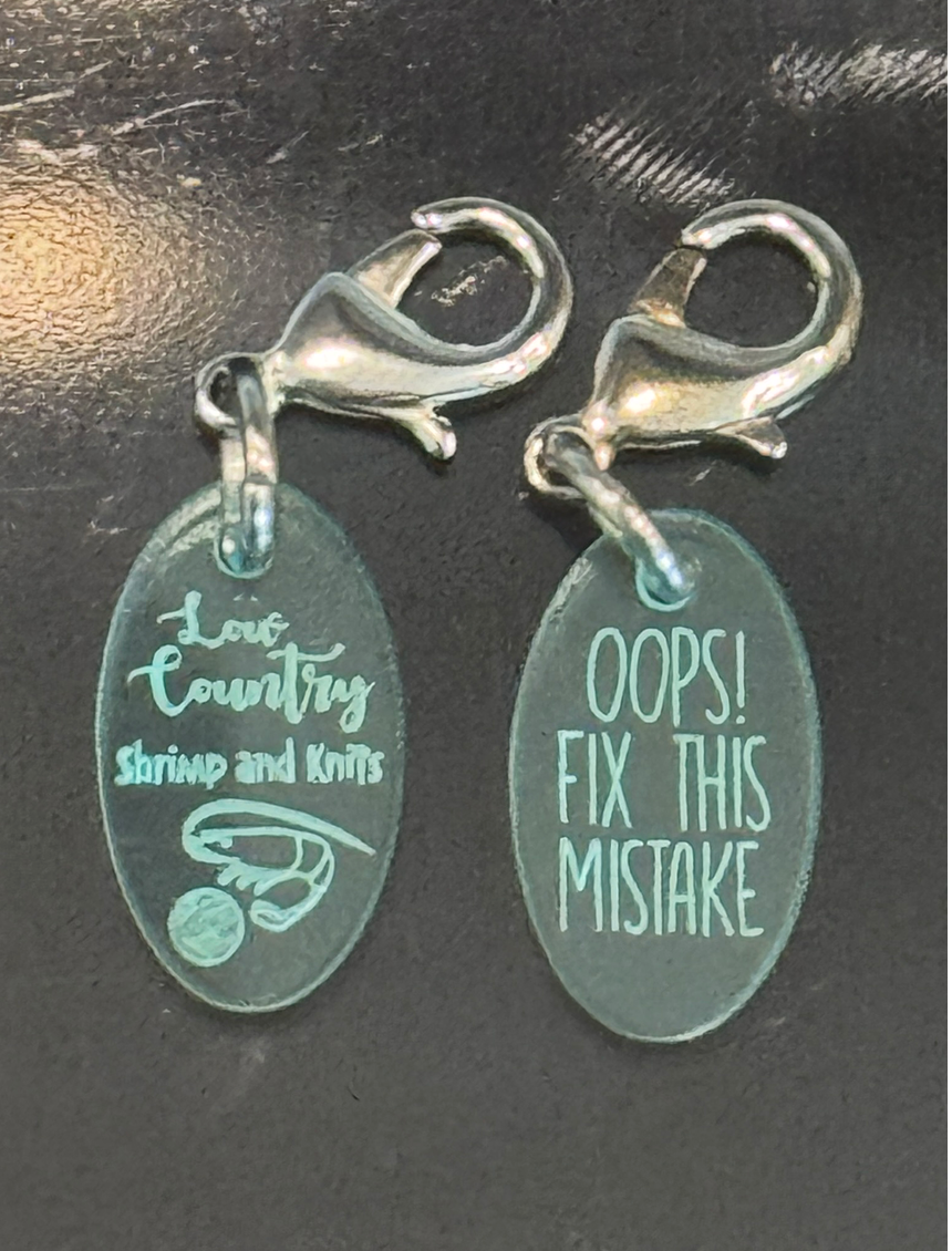 Etched with two adorable Low Country Shrimp and Knits designs (you get one of each), these small but mighty tags clip onto your project to flag the “oops” you’ll need to fix later—without leaving a mark or judgmental sigh behind.