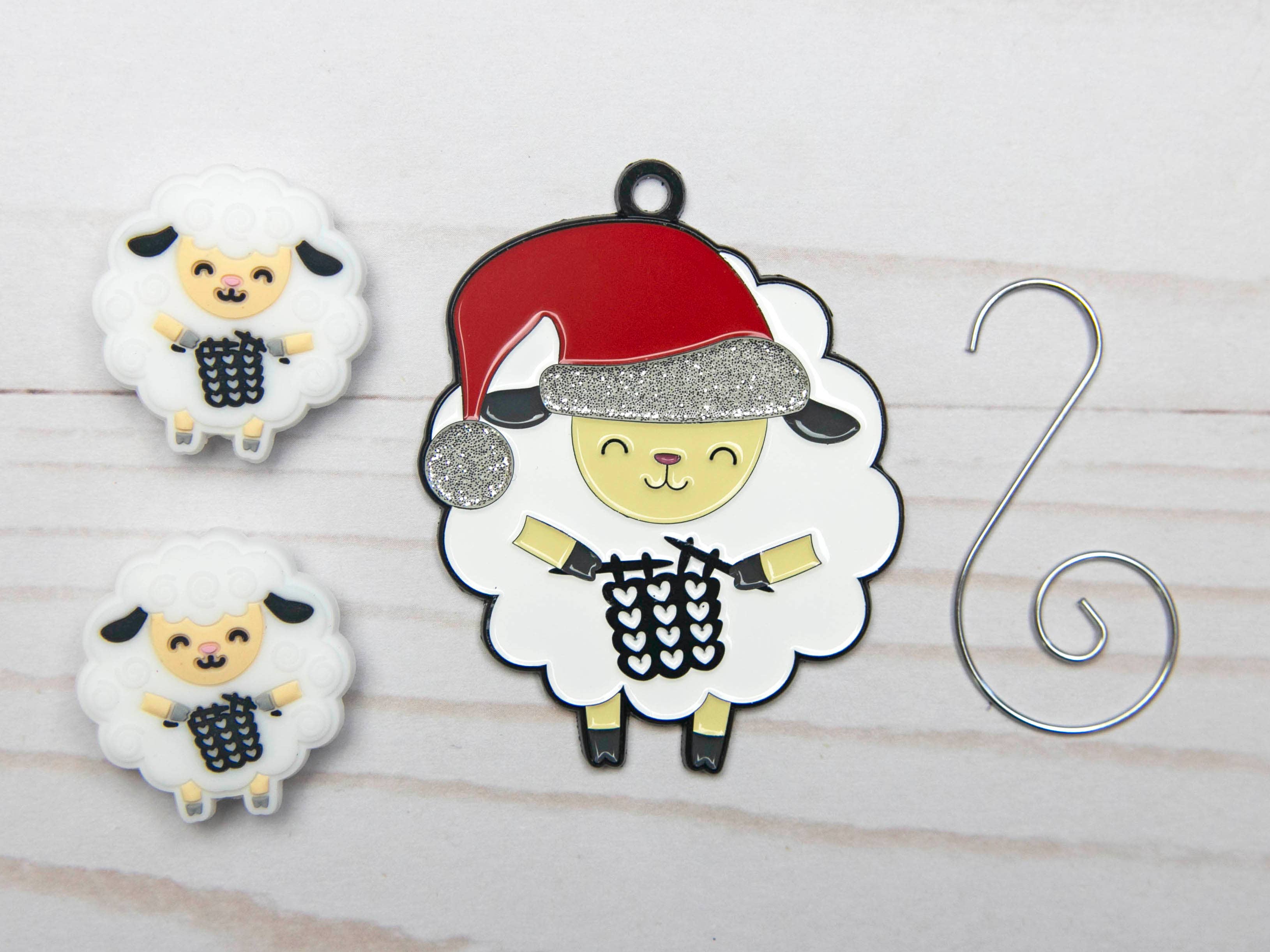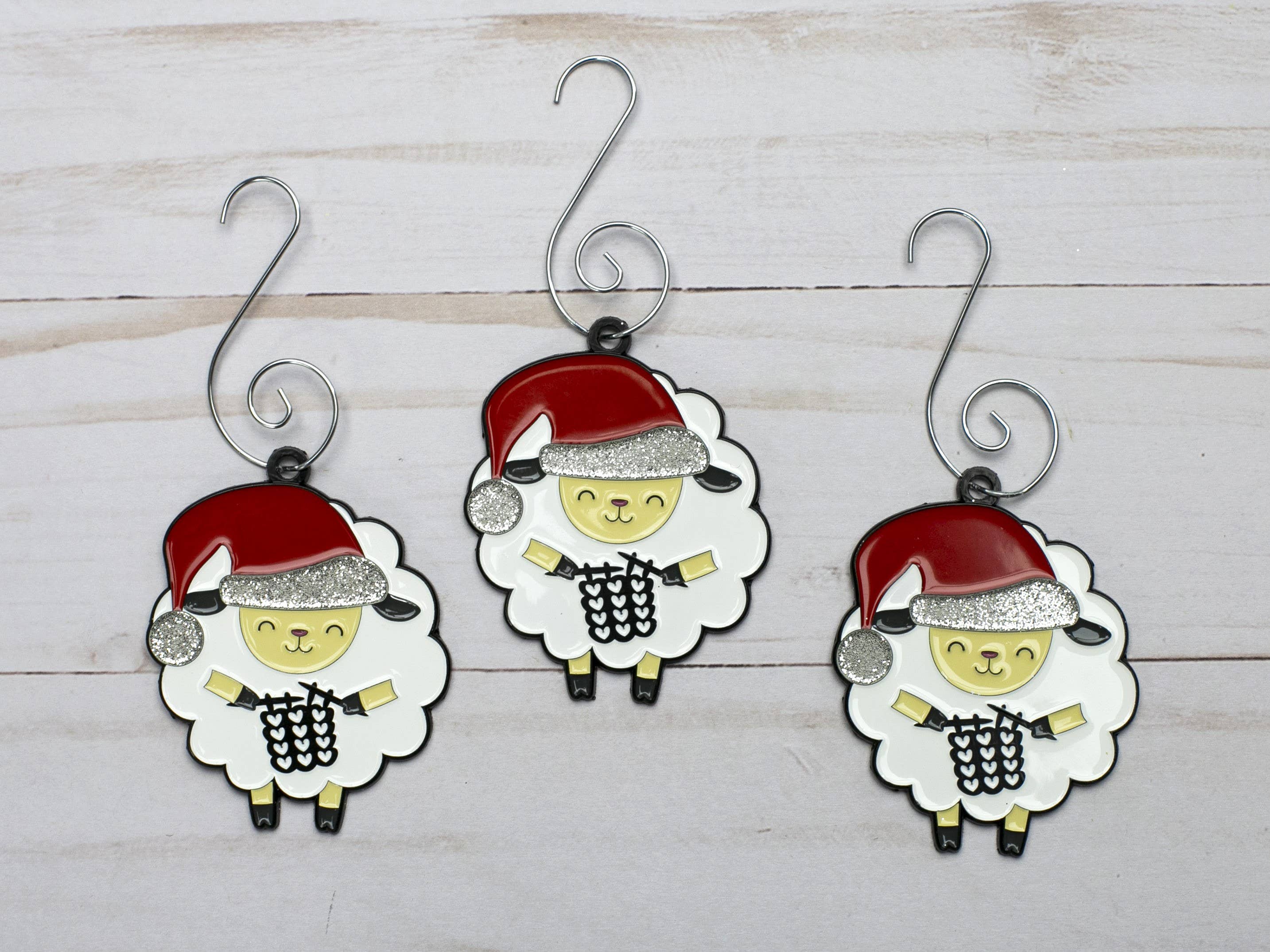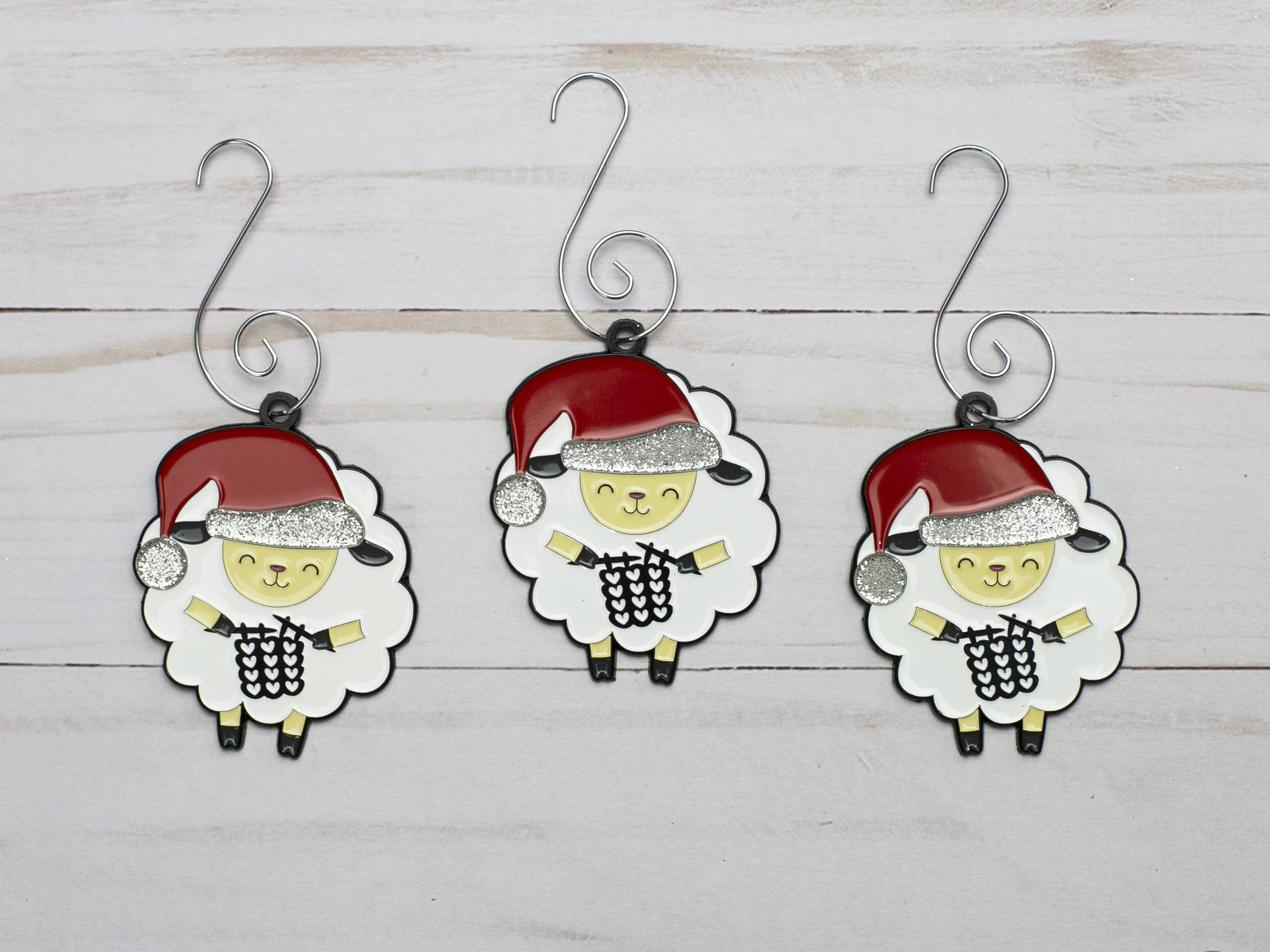 Measures 3" high and 1.5" across. Made of sturdy metal and rich enamel colors that won't bend or break. This listing is for one ornament with the silver hook shown. Our ornaments pair great with our matching stitch stoppers shown in the last photo. Sold separately.