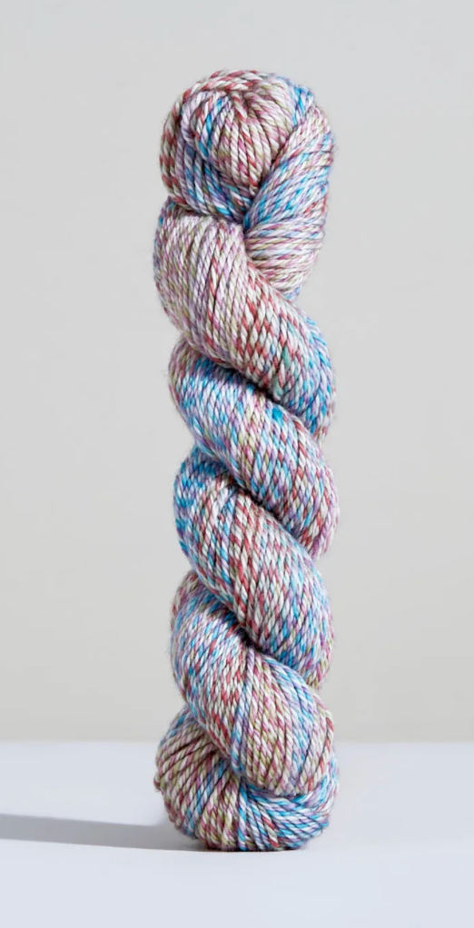 Each strand is spun with colorful plies that twist together just like those wild, wiggly spiral grain patterns you see in tree trunks. It’s nature’s tie-dye… but make it bougie merino. As you stitch, the colors shift gradually with this gorgeous, layered depth that keeps your hands entertained and your brain saying, “Just one more row,” until suddenly it’s midnight and you’ve accidentally made a sleeve.