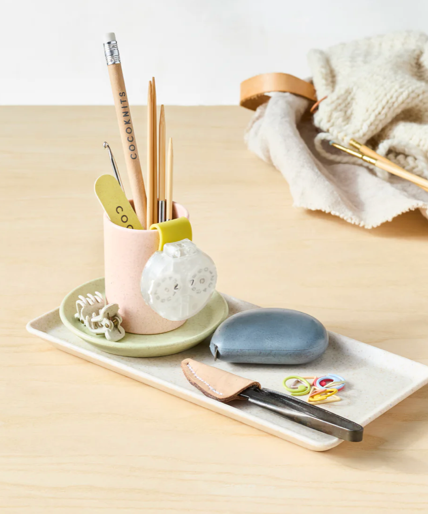 The Cocoknits Notions Cup is here to keep your long, pokey, roll-away tools standing at attention instead of roaming your workspace like tiny rebels.