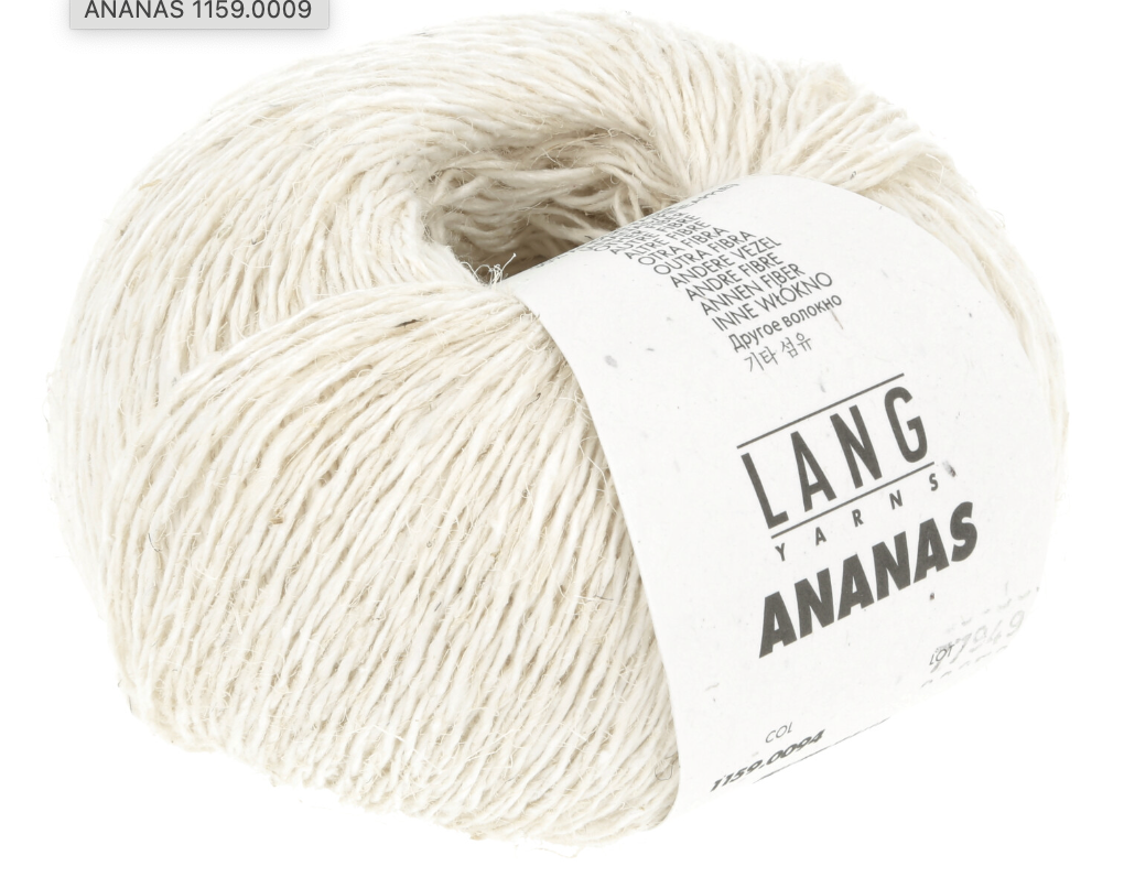The pineapple fibers give the yarn a slightly rustic look and feel, without being scratchy, while the Lyocell lends a subtle sheen. The yarn is particularly suitable for eyelet lace patterns and it is naturally breathable.